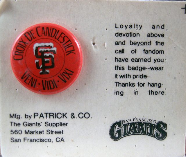 This idea of a special memento being given to the most dedicated of opera enthusiasts was inspired by my knowledge of similar incentives given to die-hard baseball fans. The former ballpark of the San Francisco Giants, Candlestick Park, was infamous for its many bitterly cold games, primarily due to its proximity to the San Francisco Bay. In an effort to encourage the continued support of the team by the fans, management came up with the “Croix de Candlestick”. In the event of a night game that went into extra innings, those die-hard fans who stayed until the bitter(ly cold) end, were presented with this personal badge of honor upon exiting the ballpark.