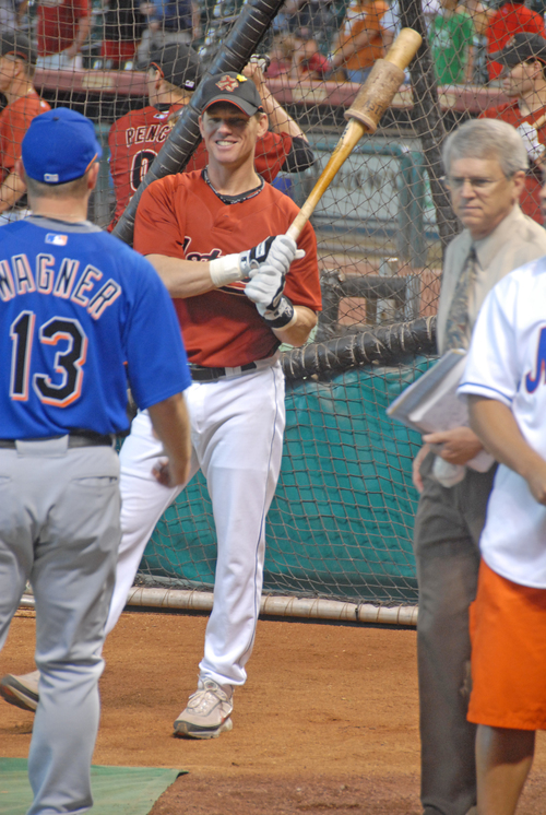 Biggio shares a final conversation with Mets friends before getting down to business.
