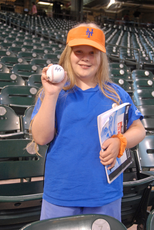Melanie with her (now) most prized possession: a baseball signed by BILLY!!!!