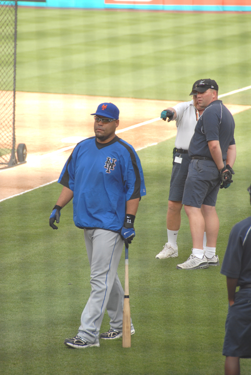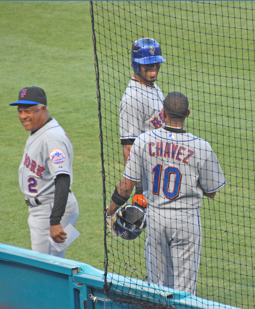 A laughed shared between Endy Chavez, Jose Reyes and Sandy Alomar during BP before Game 1.