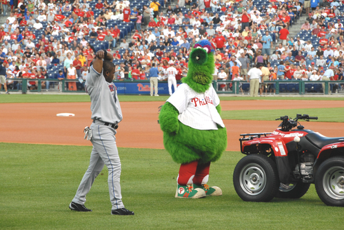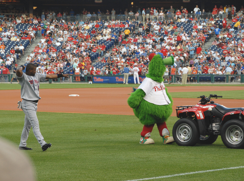 “THAT’s the guy who did it, you say?” pantomimes the Phanatic.