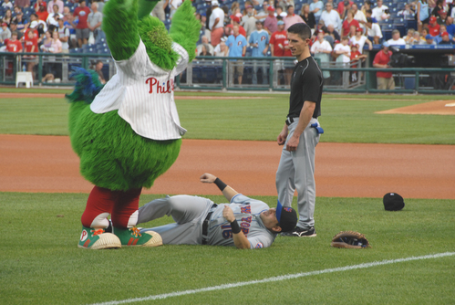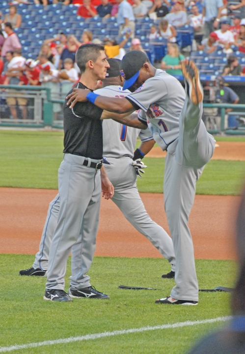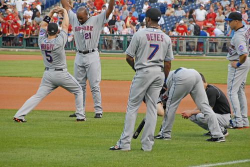 Jose Reyes showing great flexibility in his pre-game stretches.