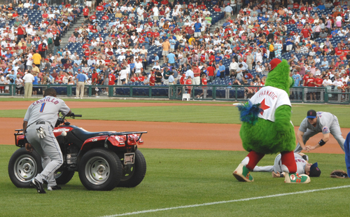 Castillo’s done something to the Phanaticmobile and is fleeing the scene.
